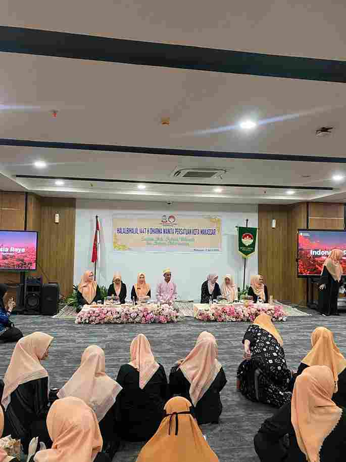 GARISSPIRITS.COM_Makassar _Kegiatan Hari Besar Islam dalam rangka Halal Bihalal 1447 Hijriah Dharma Wanita Persatuan (DWP) Kota Makassar berlangsung khidmat dan penuh kebersamaan. Acara ini dirangkaikan dengan pertemuan bulanan yang mengusung tema “Sucikan Hati, Perkuat Ukhuwah dan Bangun Kebersamaan”.