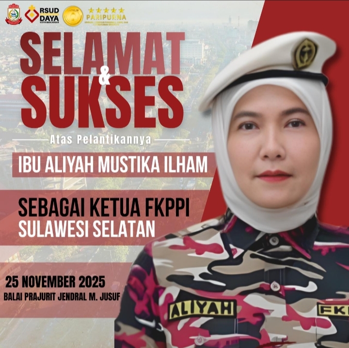 GARISSPIRITS.COM_ Makassar – Wakil Wali Kota Makassar, Hj. Aliyah Mustika Ilham resmi dilantik menjadi ketua pengurus Forum Komunikasi Putra-Putri Purnawirawan TNI/POLRI Indonesia (FKPPI) Sulsel, di Balai Prajurit Jenderal M Yusuf, Selasa, 25 November 2025.