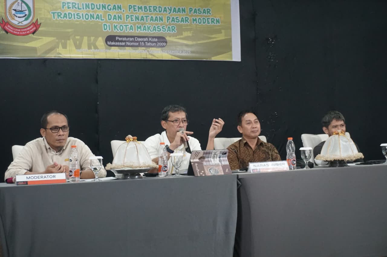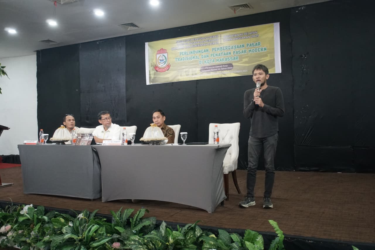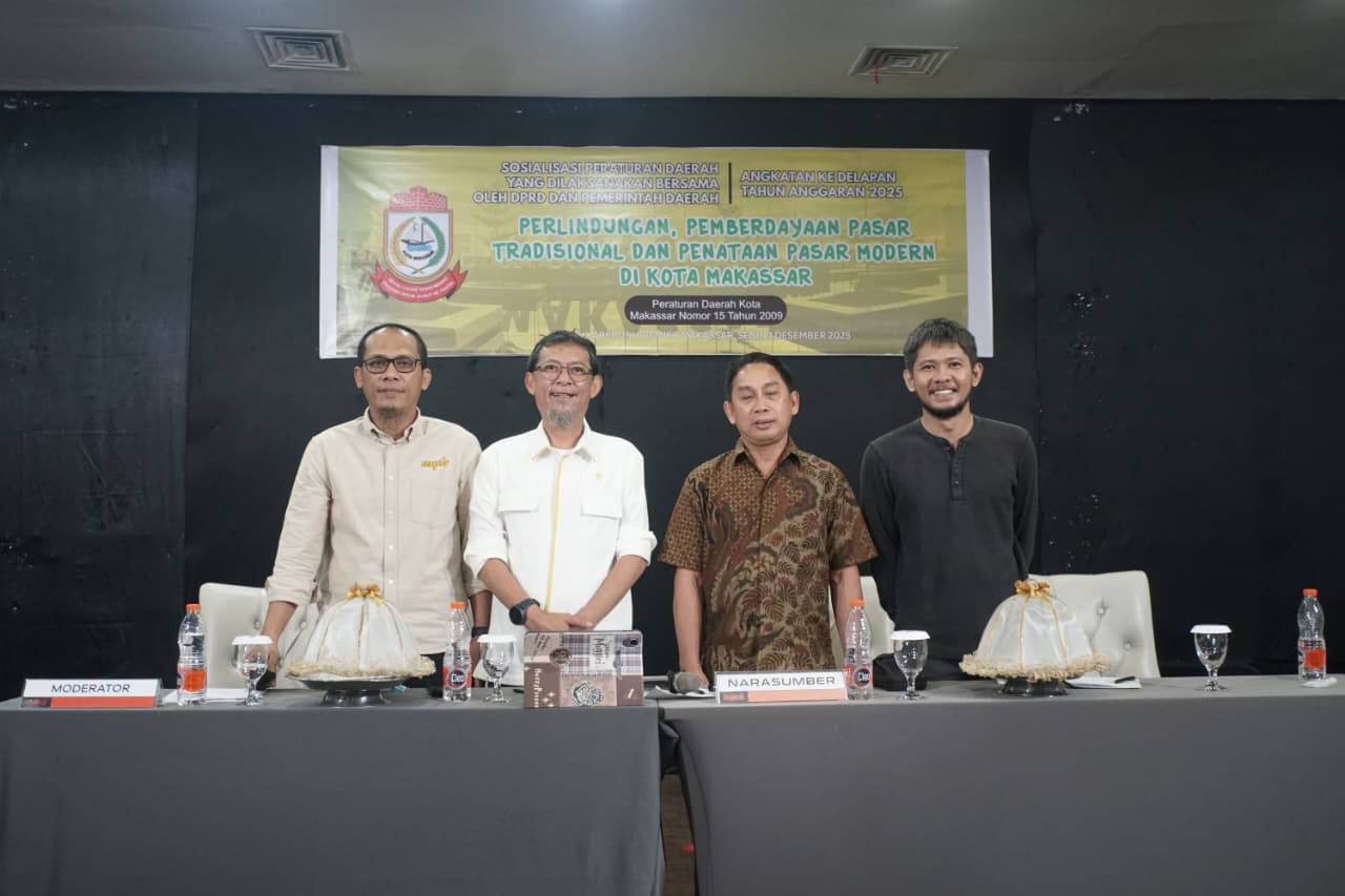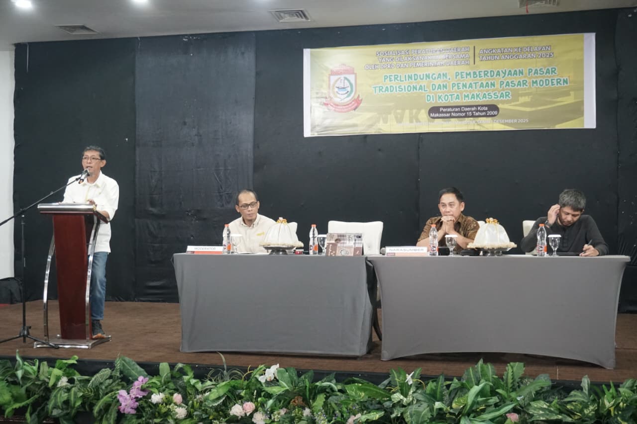 GARISSPIRITS.COM_ Makassar, Senin 01 Desember 2025, Kegiatan sosialisasi Peraturan Daerah Kota Makassar Angkatan 8 tentang Perda Nomor 15 Tahun 2009 mengenai Perlindungan, Pemberdayaan Pasar Tradisional dan Penataan Pasar      Modern digelar pada Senin, 01 Desember 2025 di Hotel Kerbosi Premiere, Jalan Jenderal M. Yusuf No. 15. Acara ini menghadirkan anggota DPRD Kota Makassar, Bapak Muhammad Yulianto Badwi, bersama dua narasumber yang membahas dinamika perkembangan pasar di Kota Makassar.