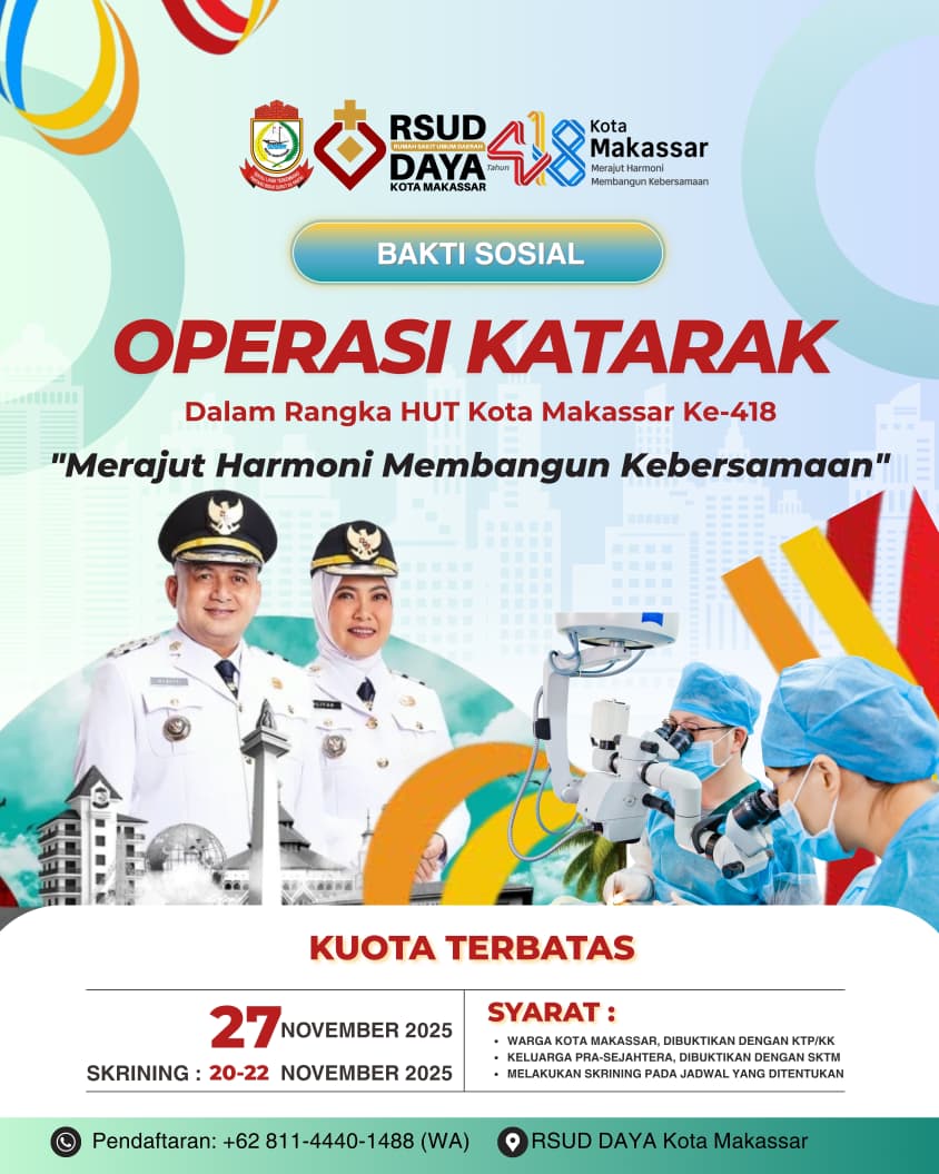 Baca Juga :  Pemkot Makassar dan RSUD Daya Gelar Operasi Katarak Gratis dalam Rangka HUT Kota Makassar ke-418