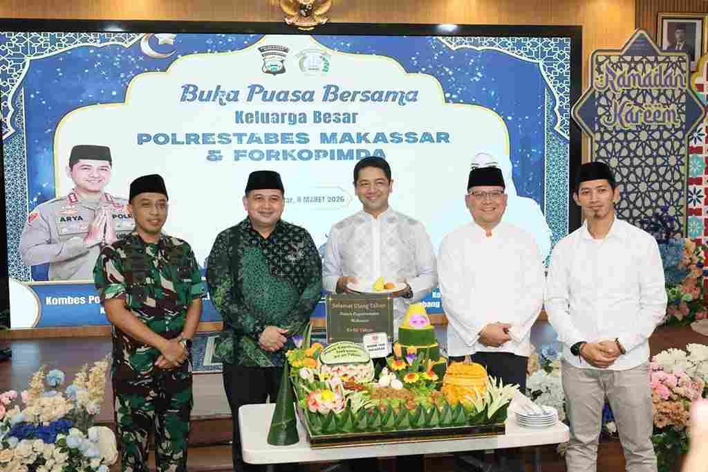 Momentum buka puasa bersama ini juga dirangkaikan dengan perayaan ulang tahun ke-50 Kapolrestabes Makassar, Arya Perdana.